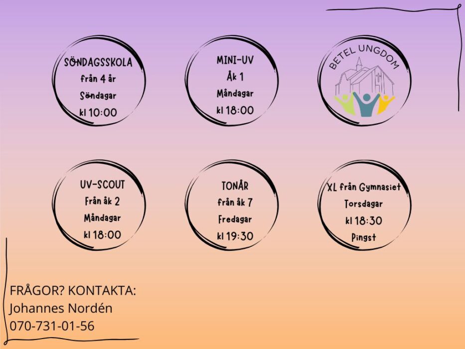 Ungdomsledare: Johannes Nordén tel. 070-731 01 56